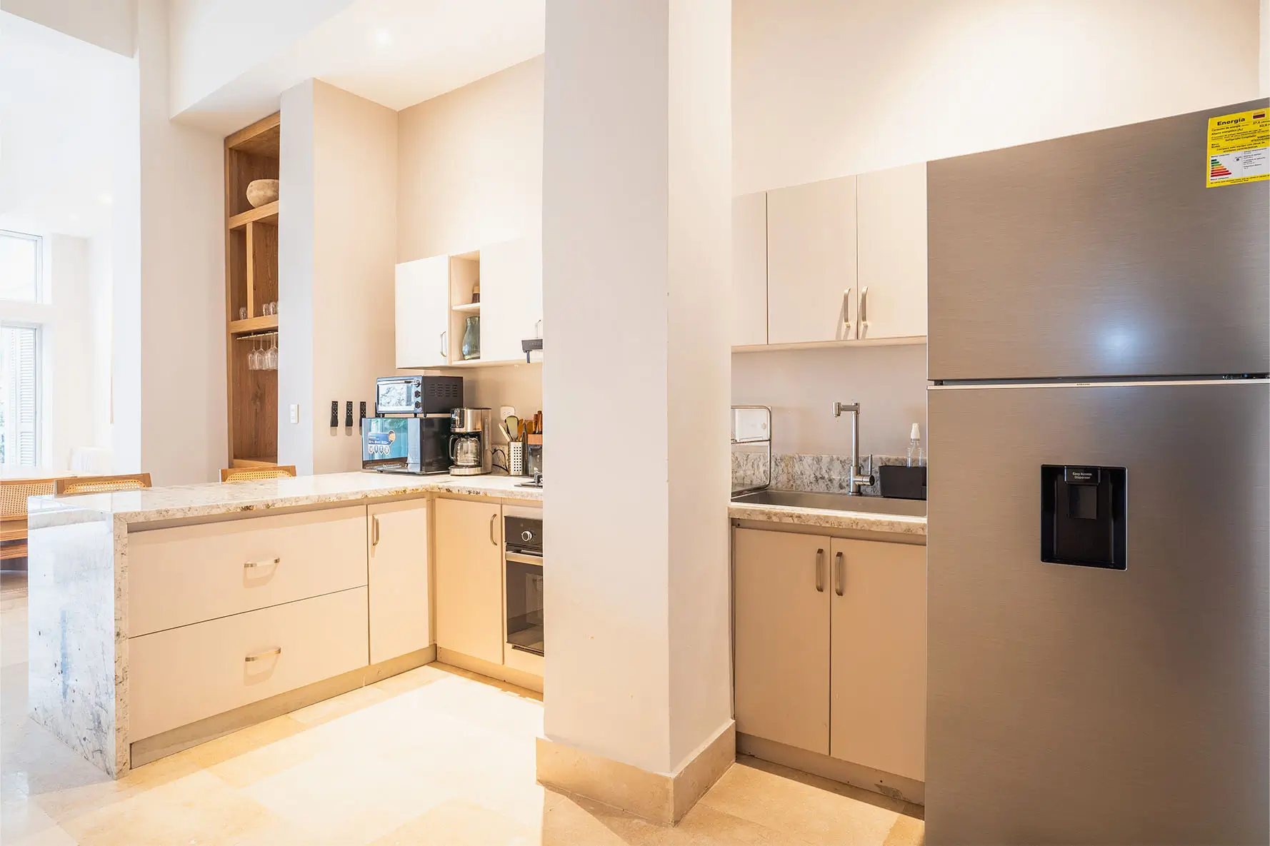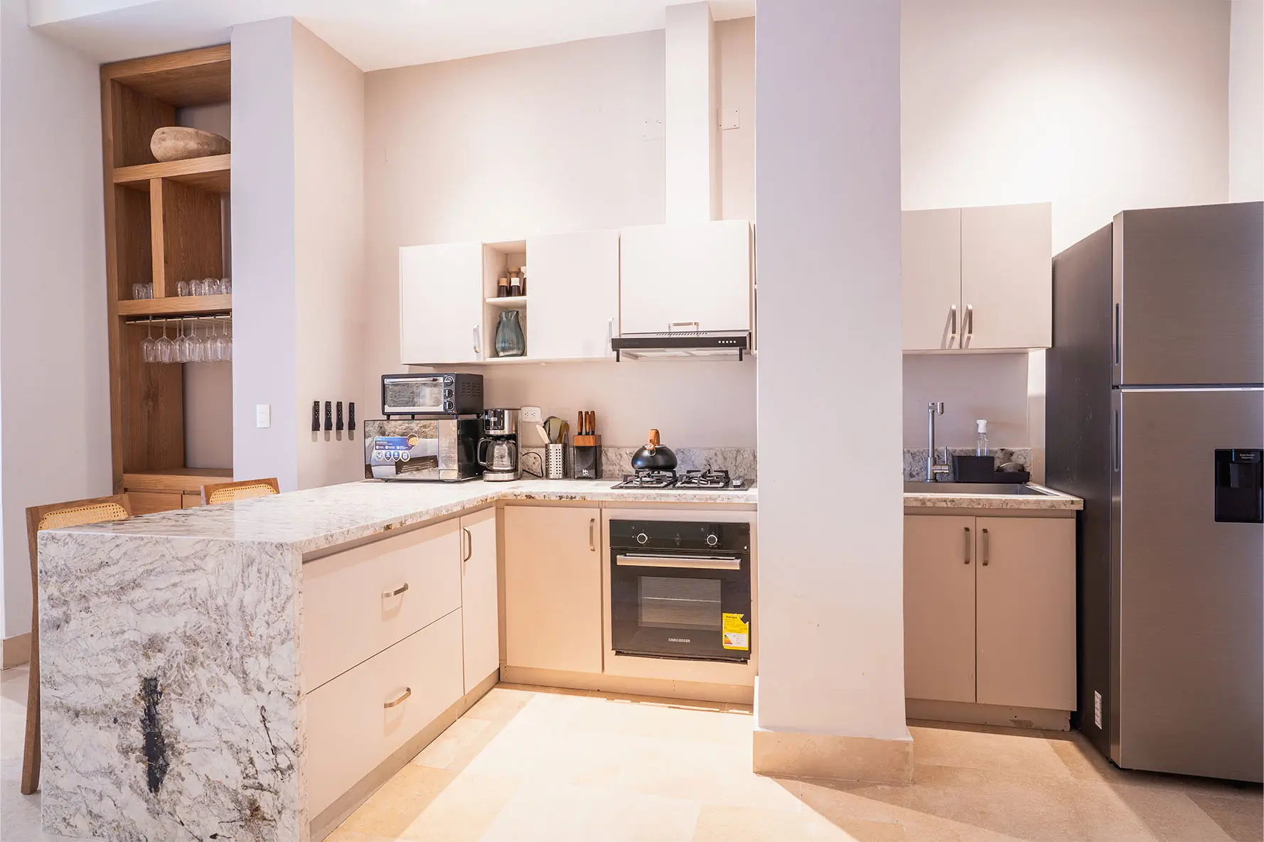 La cocina gourmet está totalmente equipada para quienes disfrutan de cocinar y para los amantes del aire libre, la casa también cuenta con una zona de BBQ donde los días soleados se convierten en encuentros llenos de sabor, música y buena compañía.